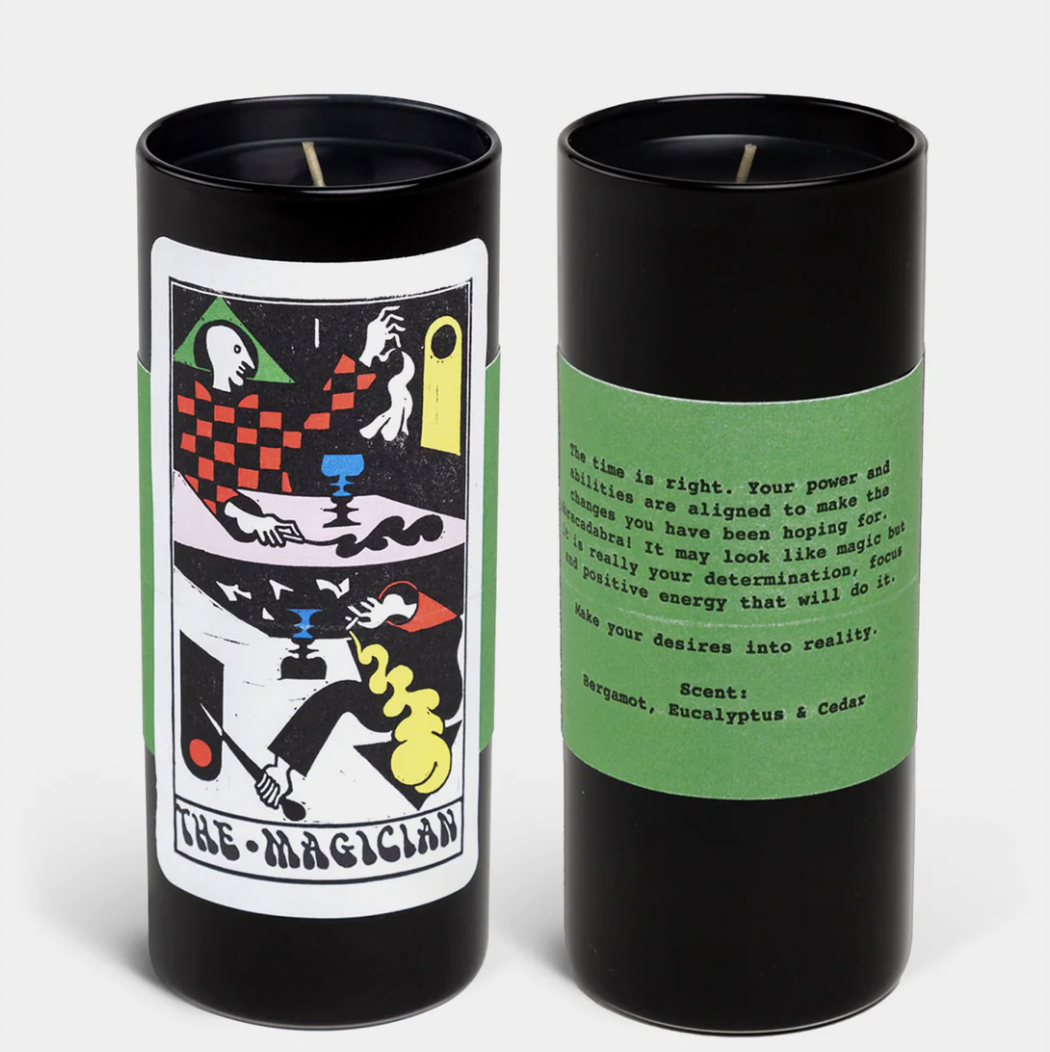 They have an incredible fragrance and come in a reusable black tin, and there's a unique Tarot illustration for each color of Tarot candle. Even outside of Tarot reading, you can keep them as an accent piece for your bedroom, coffee table, or kitchen.